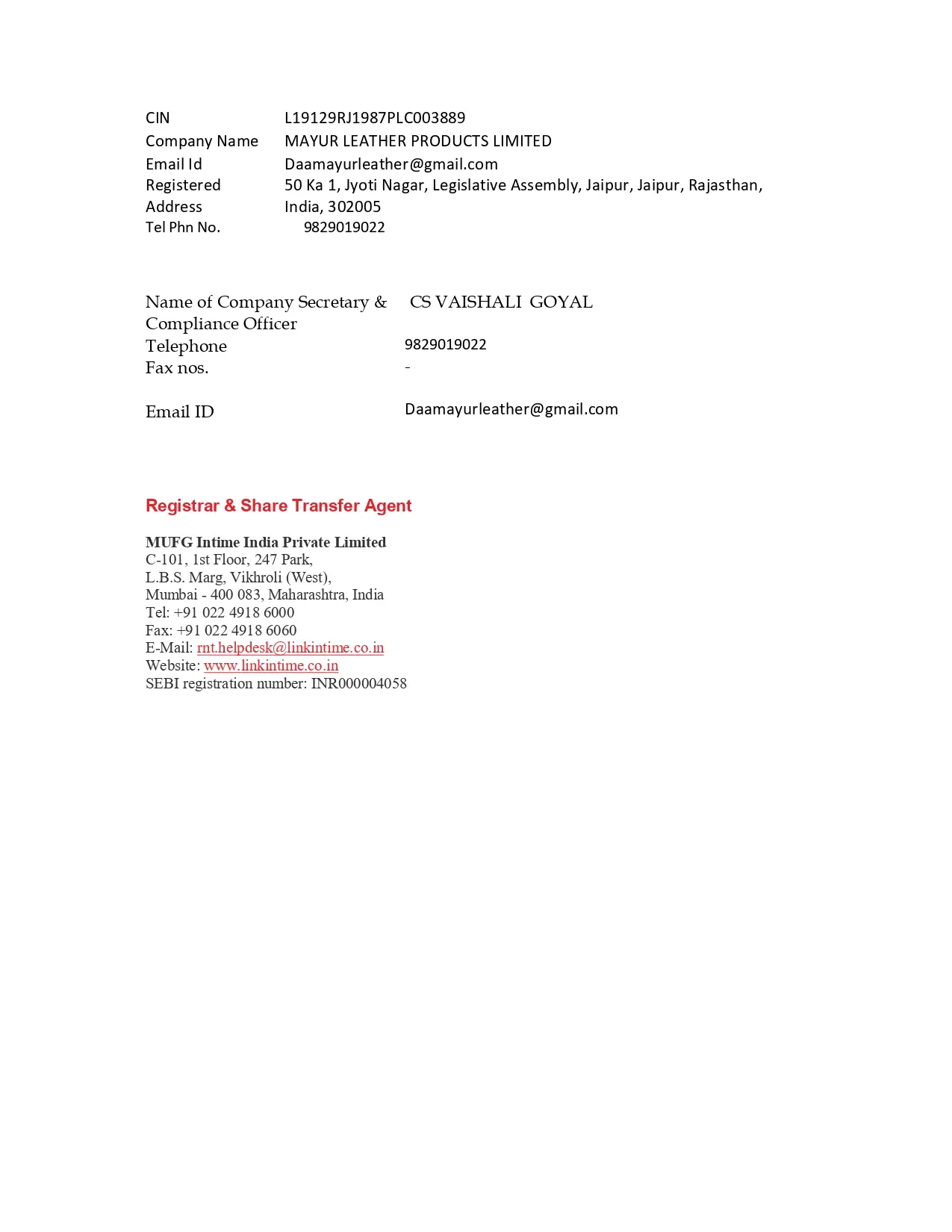Disclosure under Regulation 46 of SEBI LODR Regulation, 2015